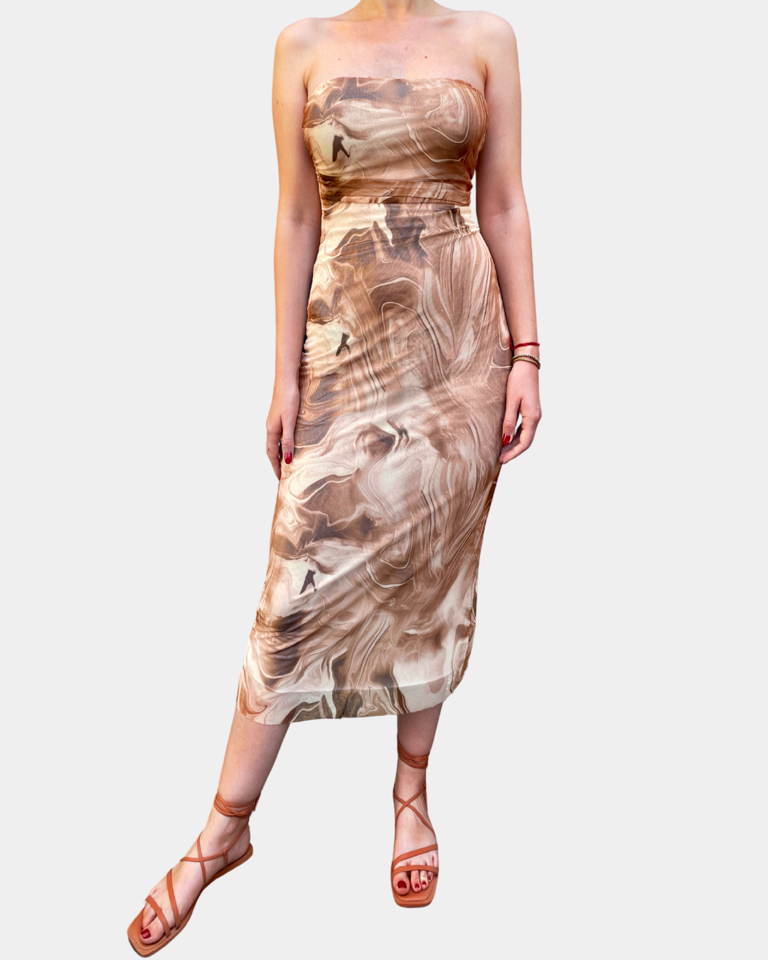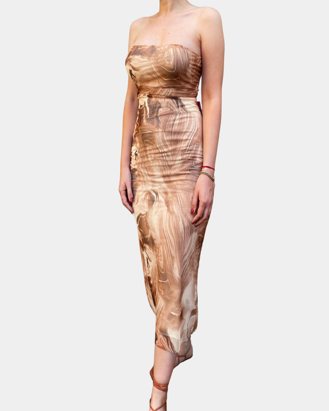 - Abito midi aderente a fascia effetto tulle con fodera interna e spacco sul retro
