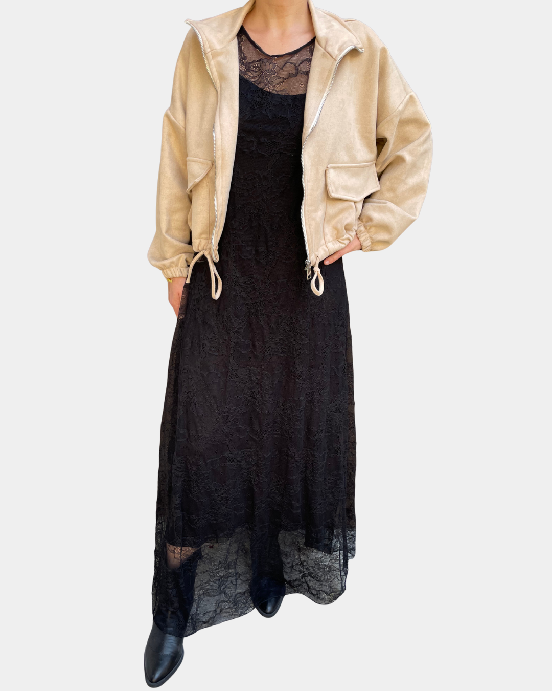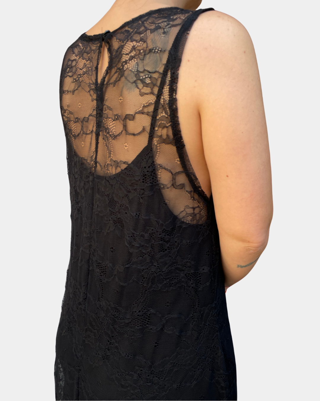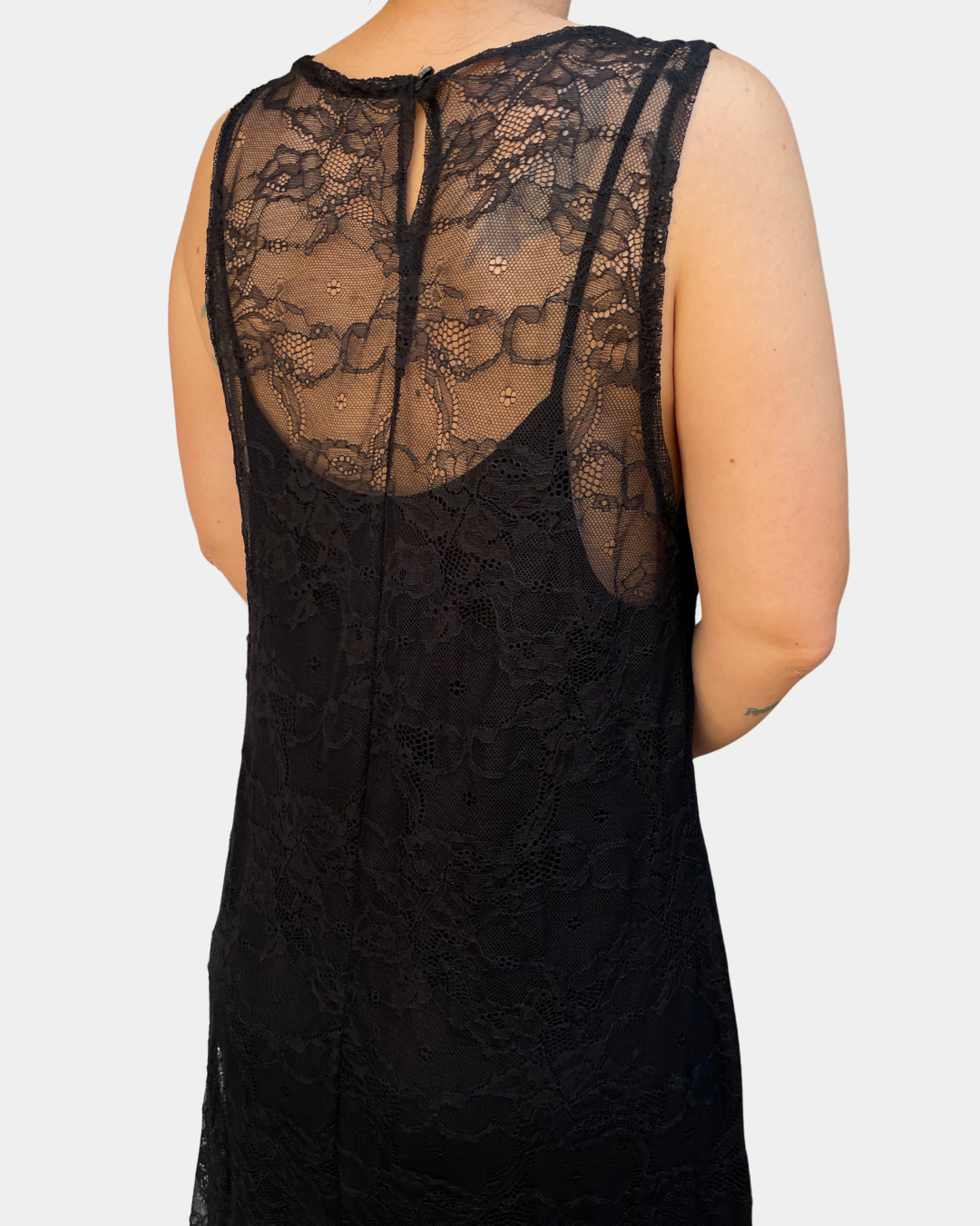 - Abito lungo in pizzo, girocollo, a canotta, semitrasparente con fodera rimovibile