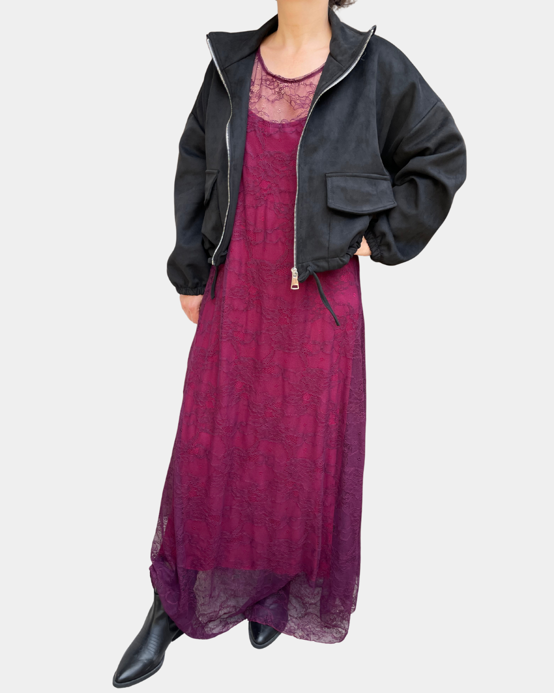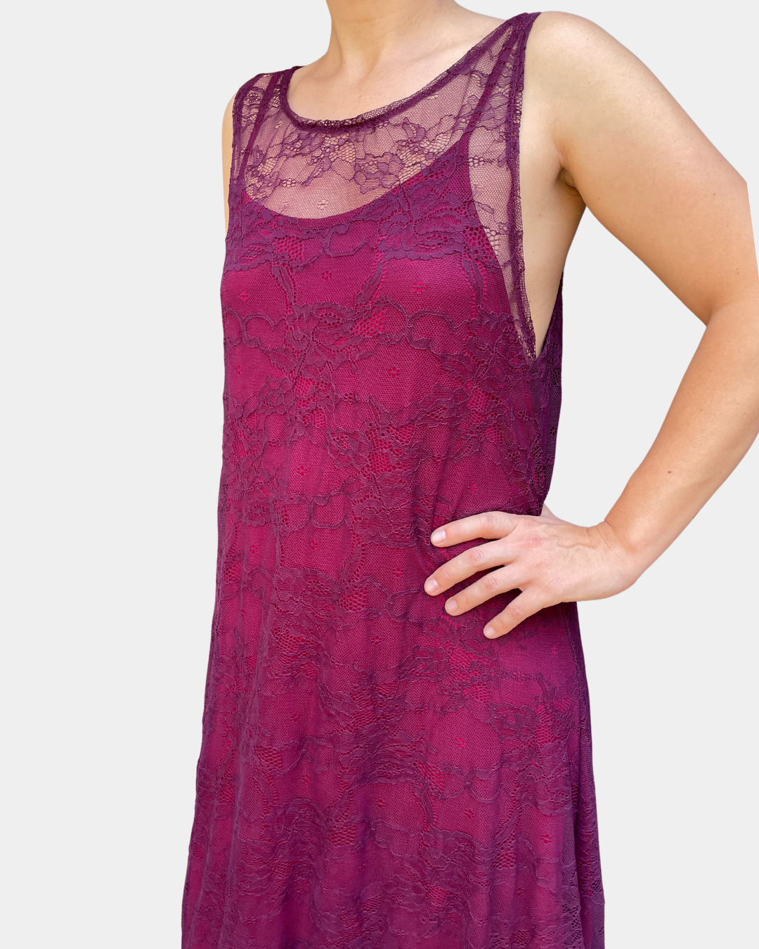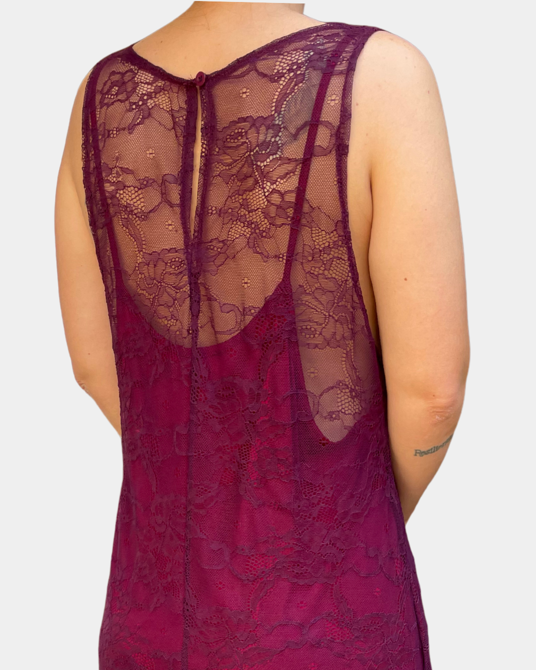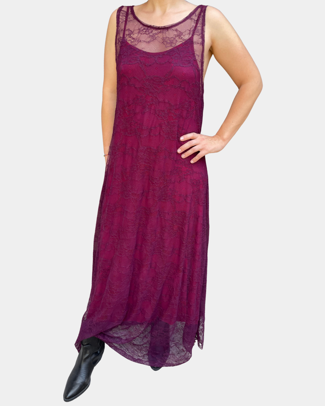- Abito lungo in pizzo, girocollo, a canotta, semitrasparente con fodera rimovibile