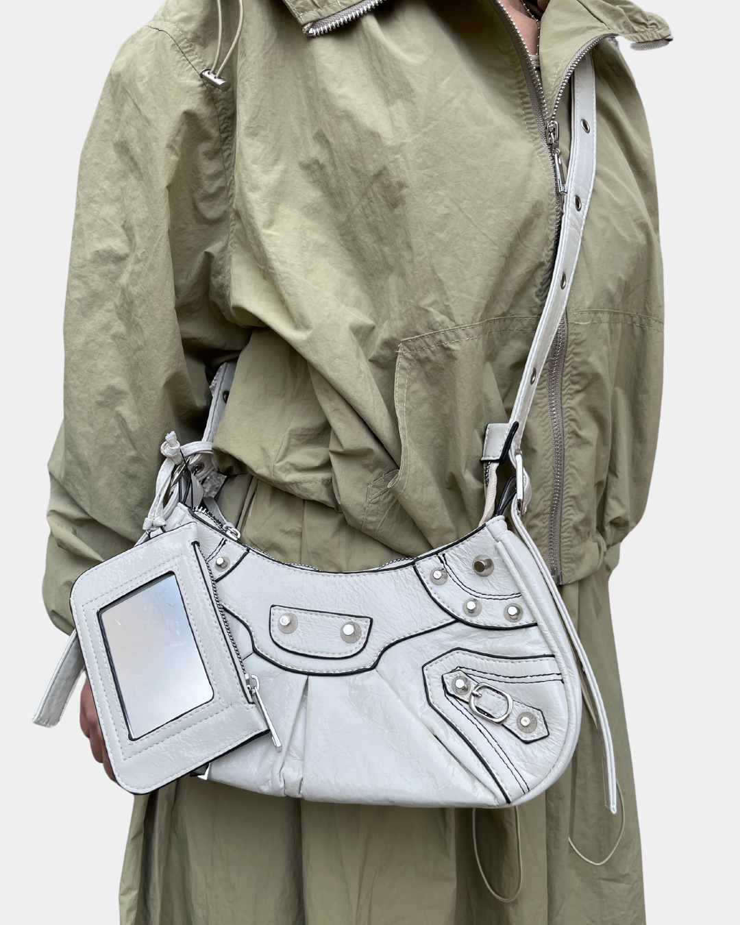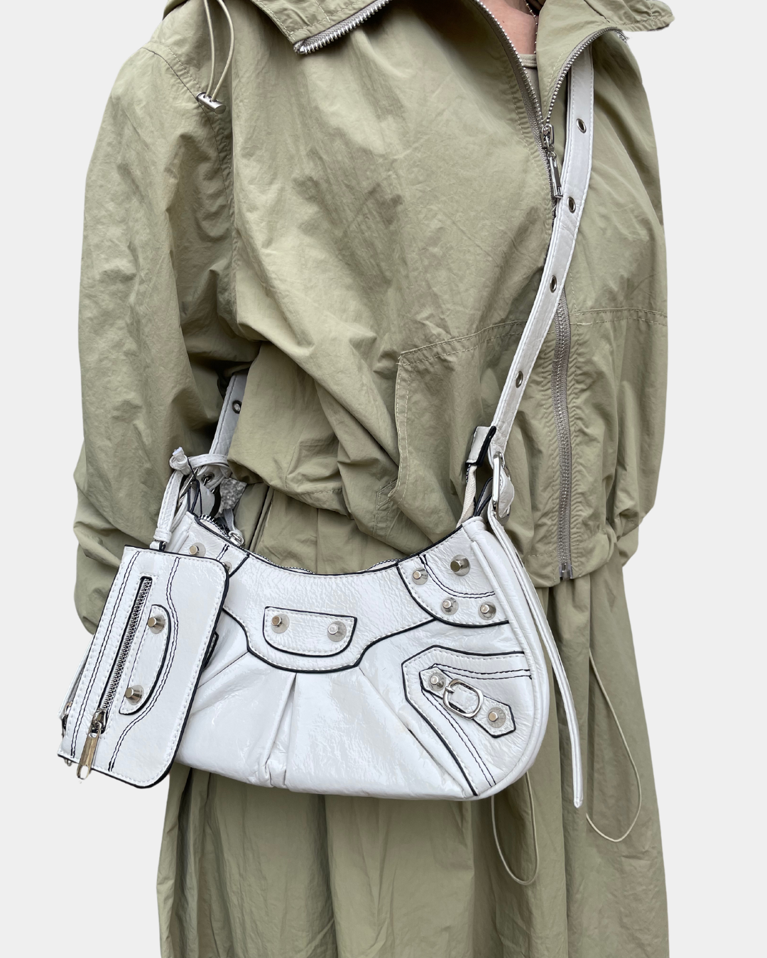 - Borsa in semilpelle con tracolla regolabile e tasca interna con zip
