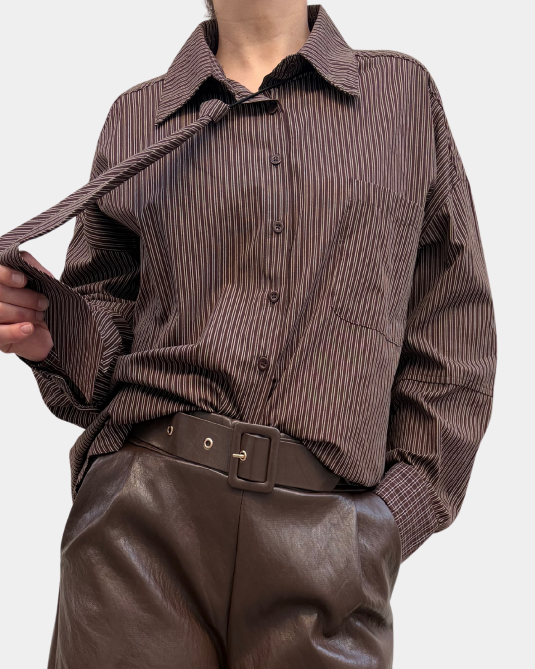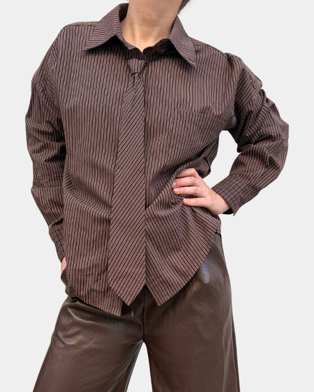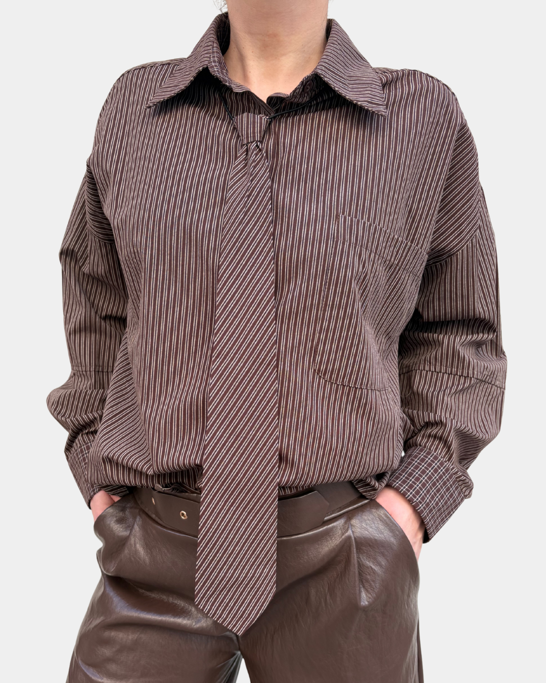 - Camicia a righe con colletto classico, abbottonatura frontale, taschino laterale e cravatta regolabile