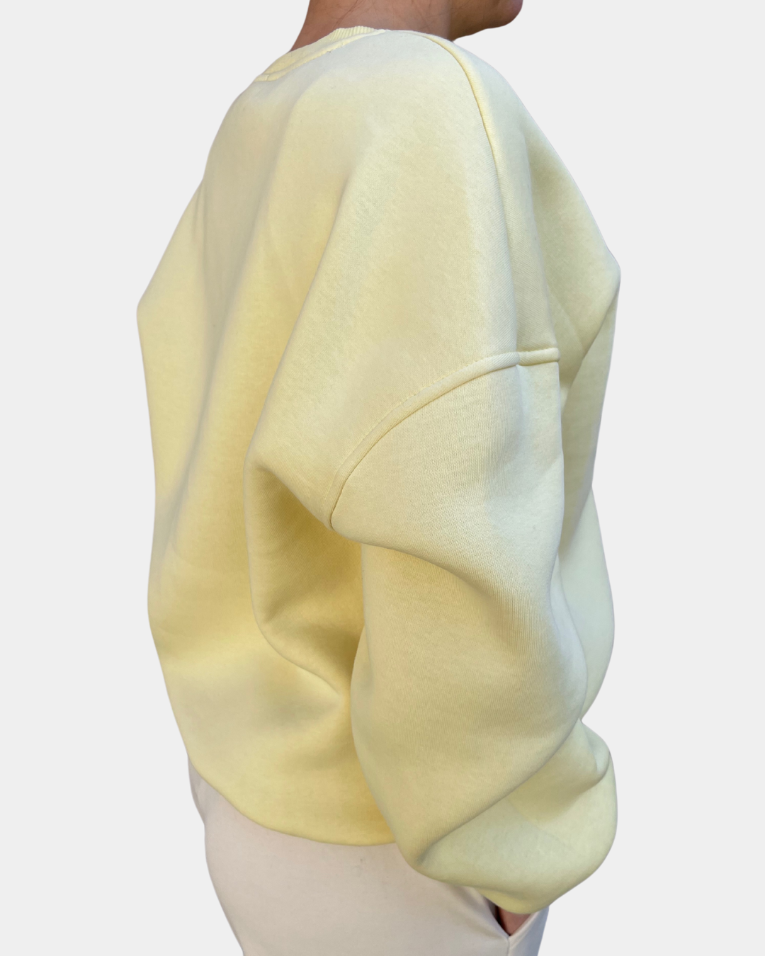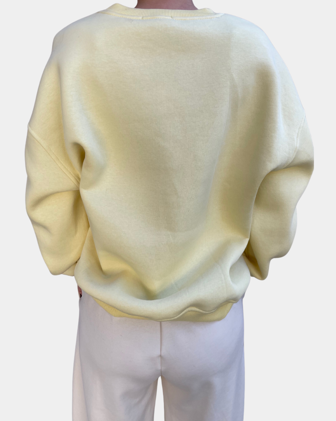 - Felpa girocollo con dettaglio di scritta frontale ricamato, interno felpato e finiture polso e bordo a coste