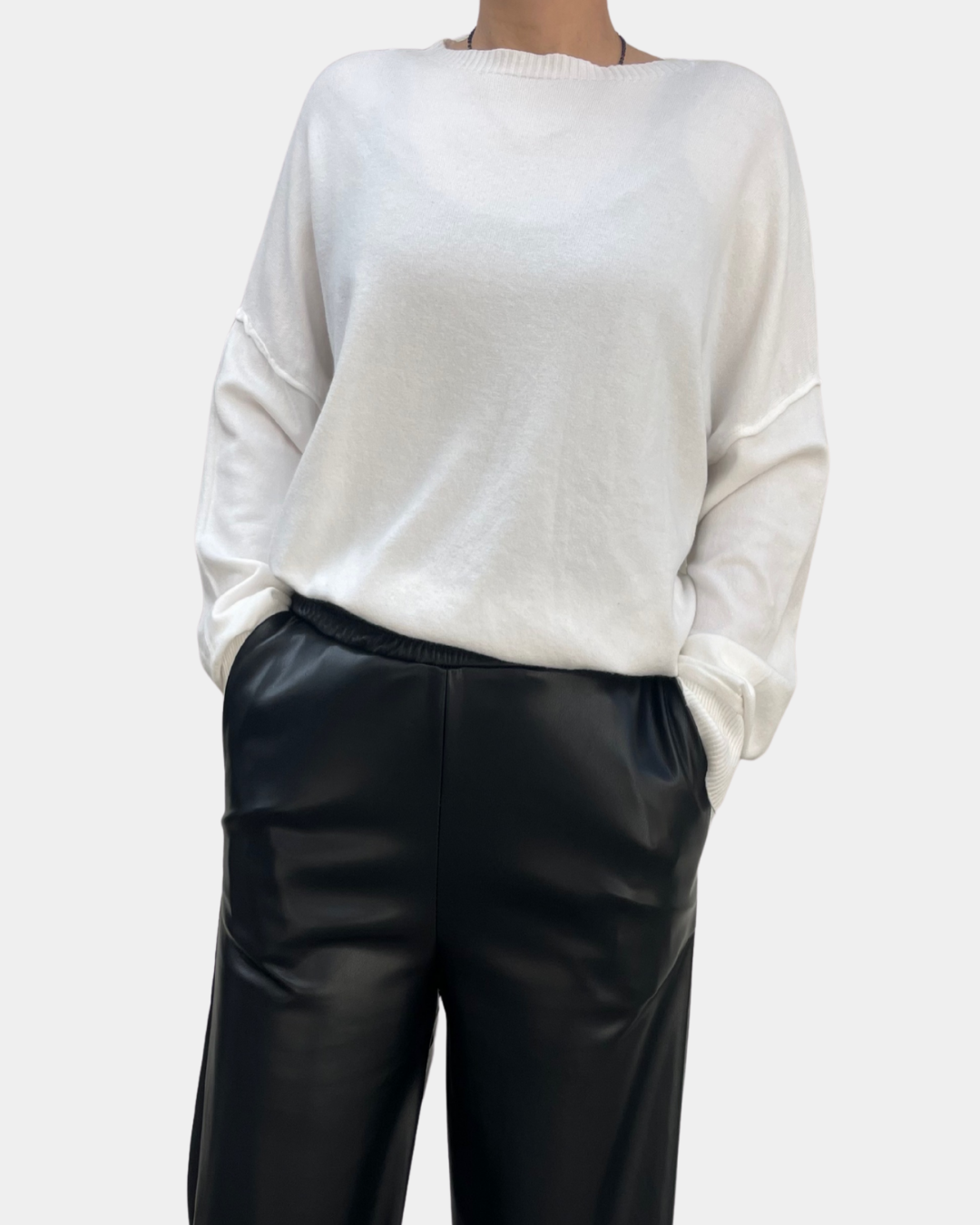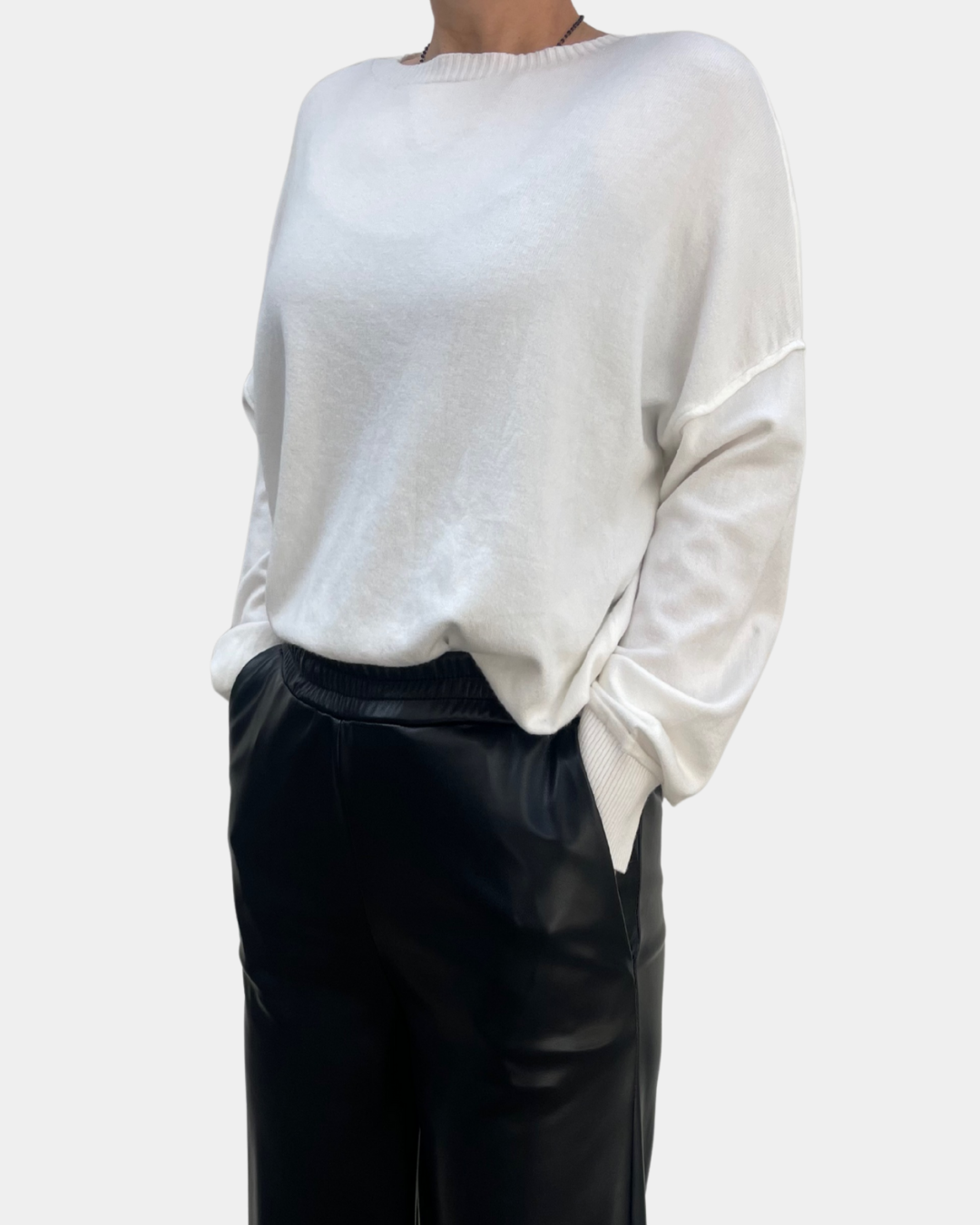 - Maglioncino girocollo a spalla scesa con cucitura a contrasto e fondo e manica rifinita a costine