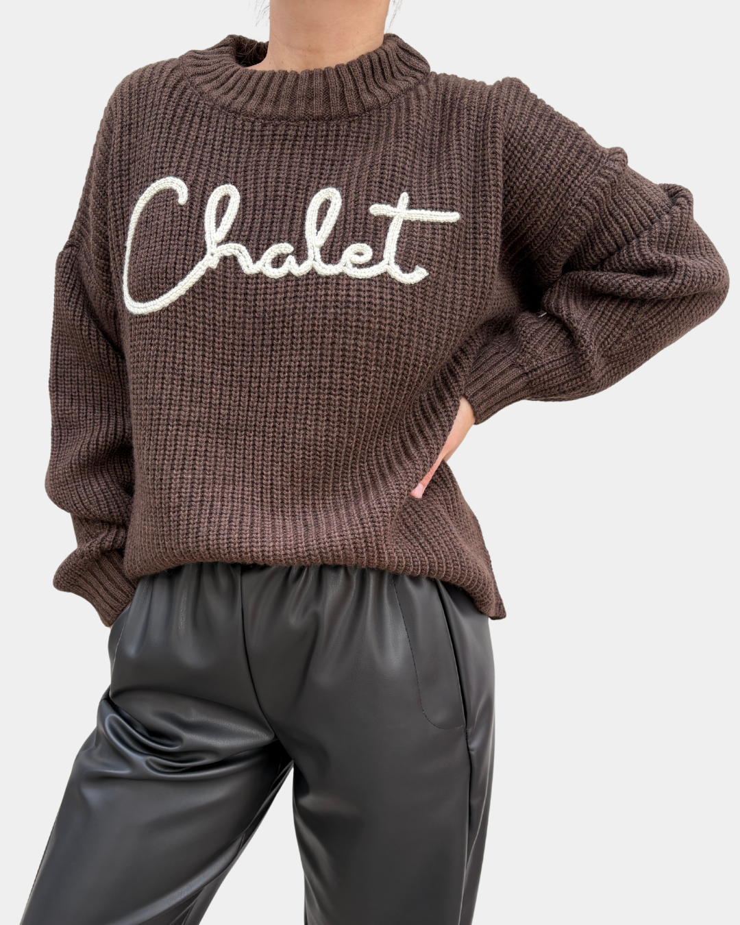 - Maglione in misto lana con dettaglio testo ricamato con filo ramè oro e scollo rotondo