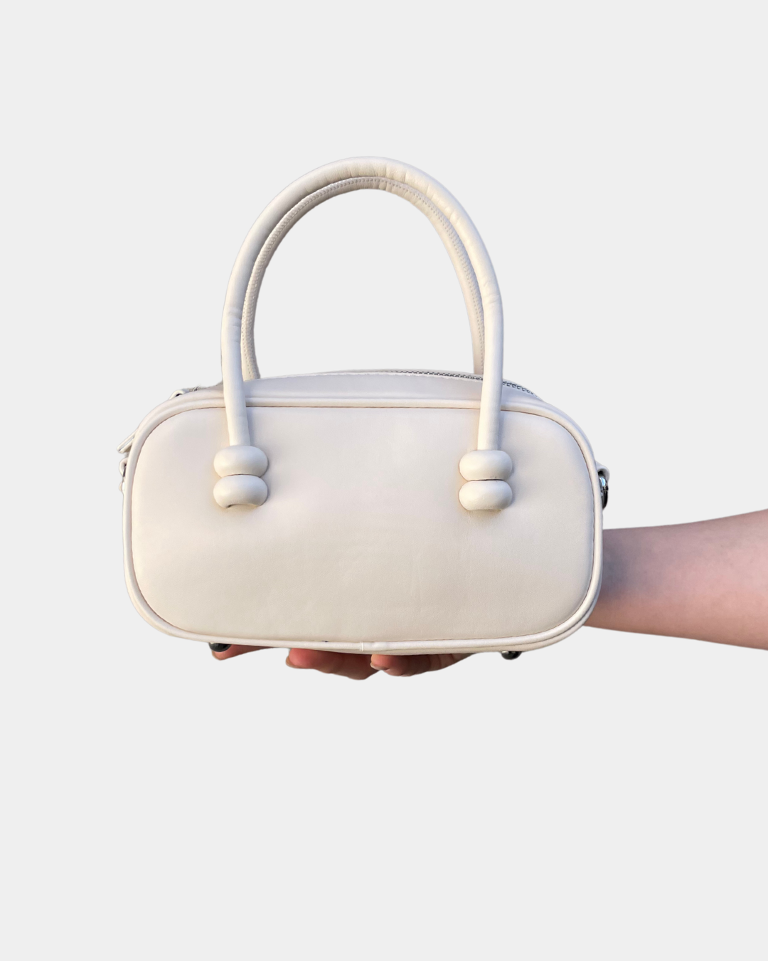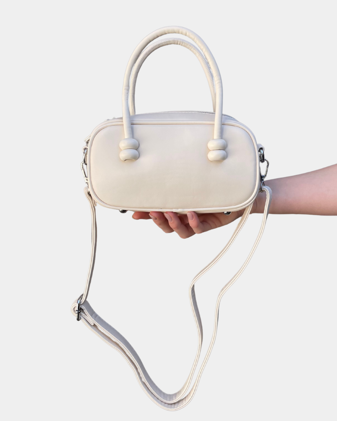 - Borsa a mano o spalla con tracolla regolabile e rimovibile, due tasche interne, chiusura tramite zip e piedini sul fondo della borsa
