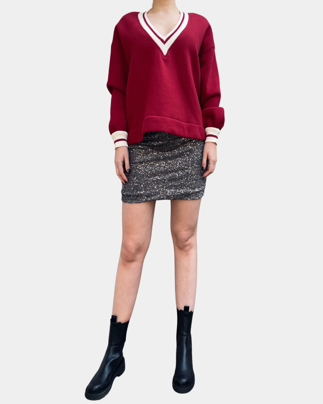 - Minigonna in velluto e paillettes, con elastico in vita e fodera interna