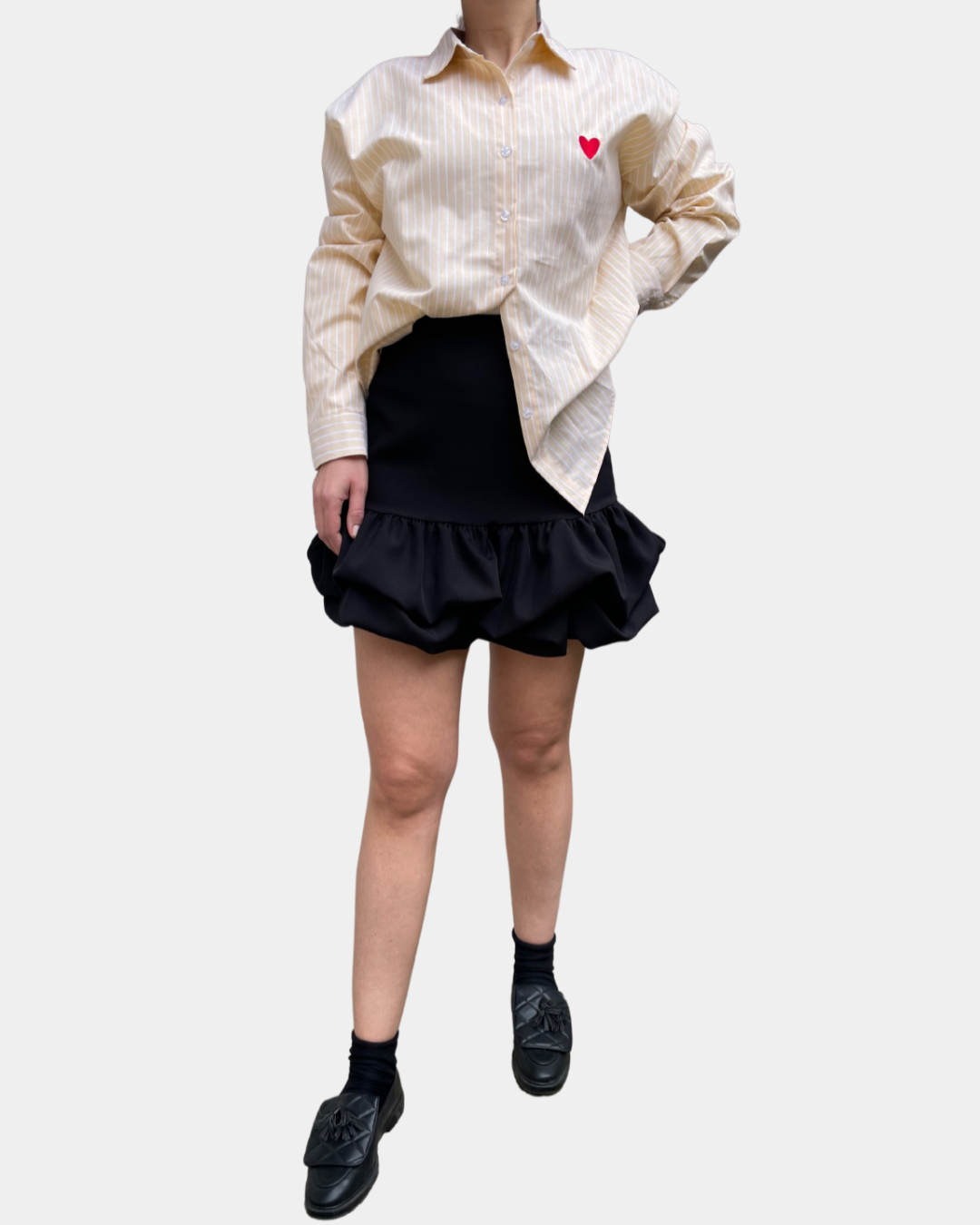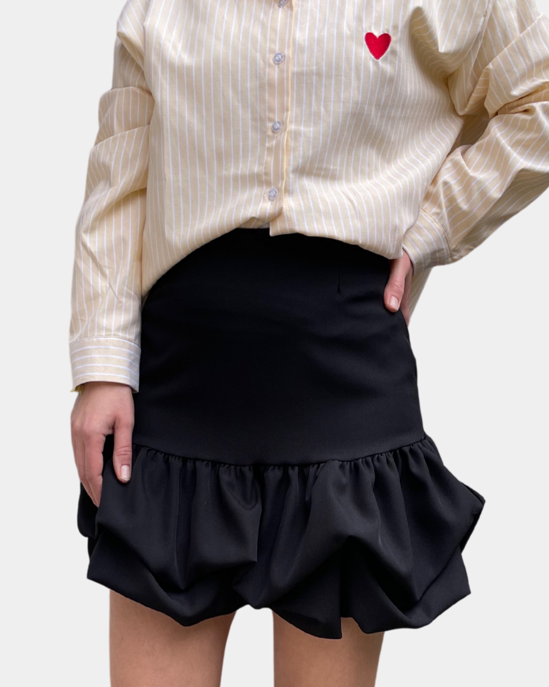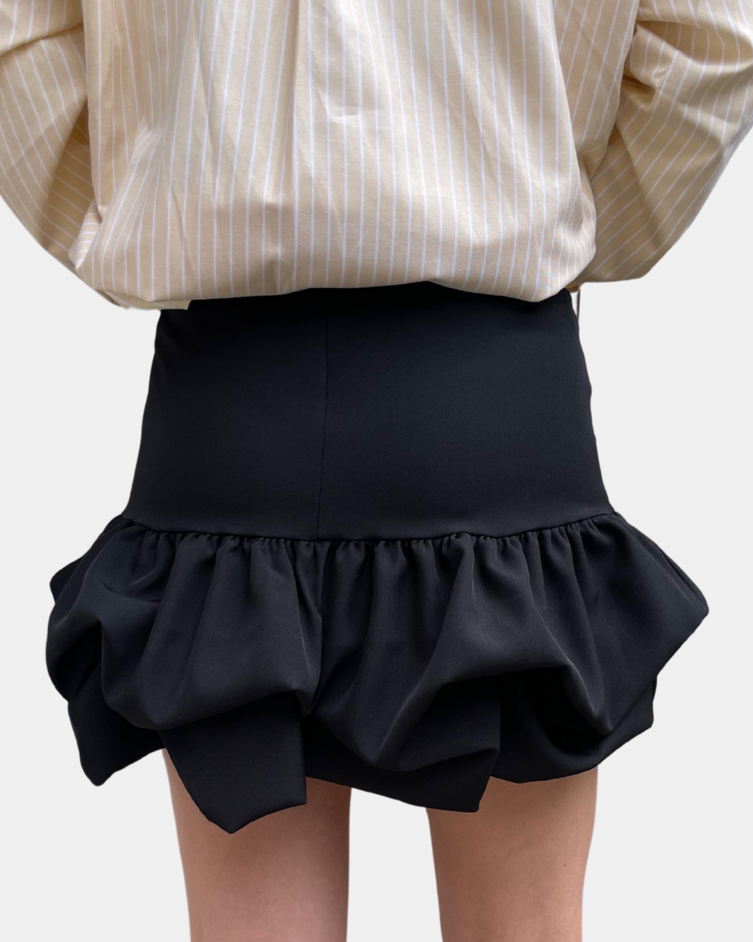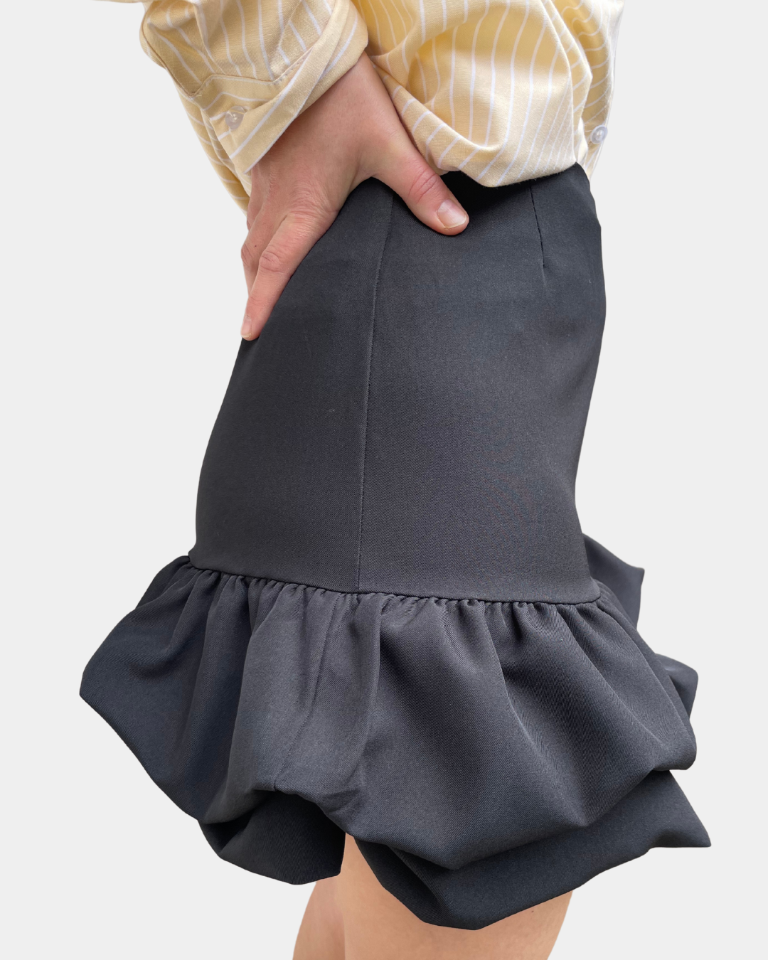- Minigonna con fondo a palloncino, vita medio alta e chiusura sul retro con zip invisibile
