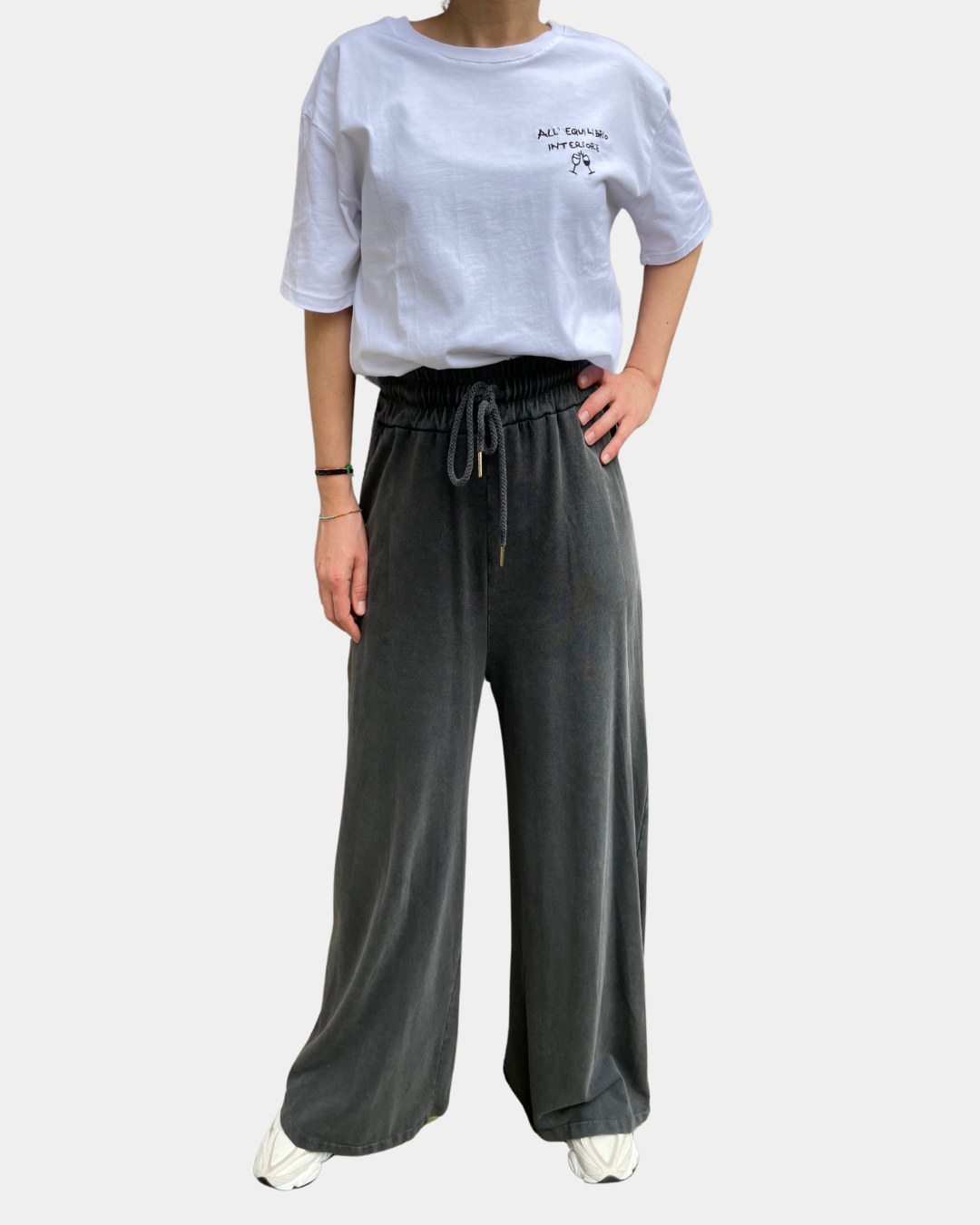 - Pantalone con coulisse in vita regolabile, gamba dritta, tasche laterali filetto