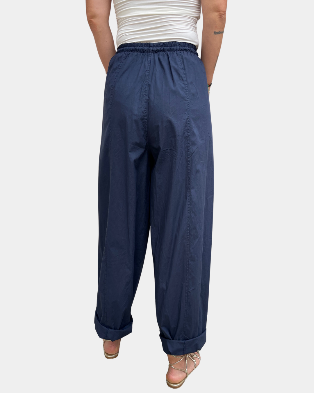 - Pantalone modello wide leg a gamba dritta con coulisse in vita regolabile e tasche filetto laterali